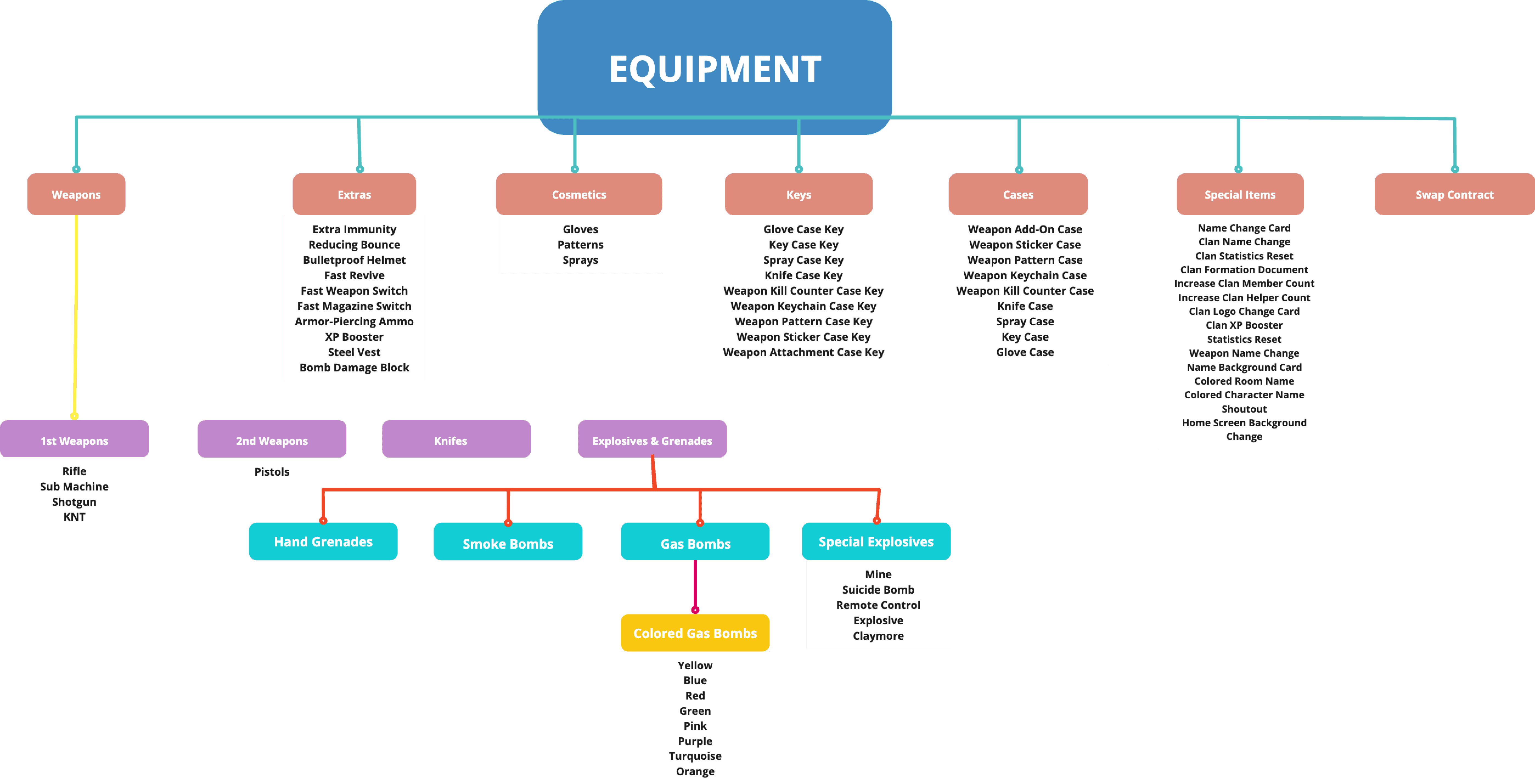 The inventory system is designed similarly to Counter-Strike, where players grow their in-game economy by playing and can select weapons from their inventory slots during matches. The goal of this structure is to allow players to build their loadout, including primary and secondary weapons as well as consumables, ensuring quick access to their gear in-game.