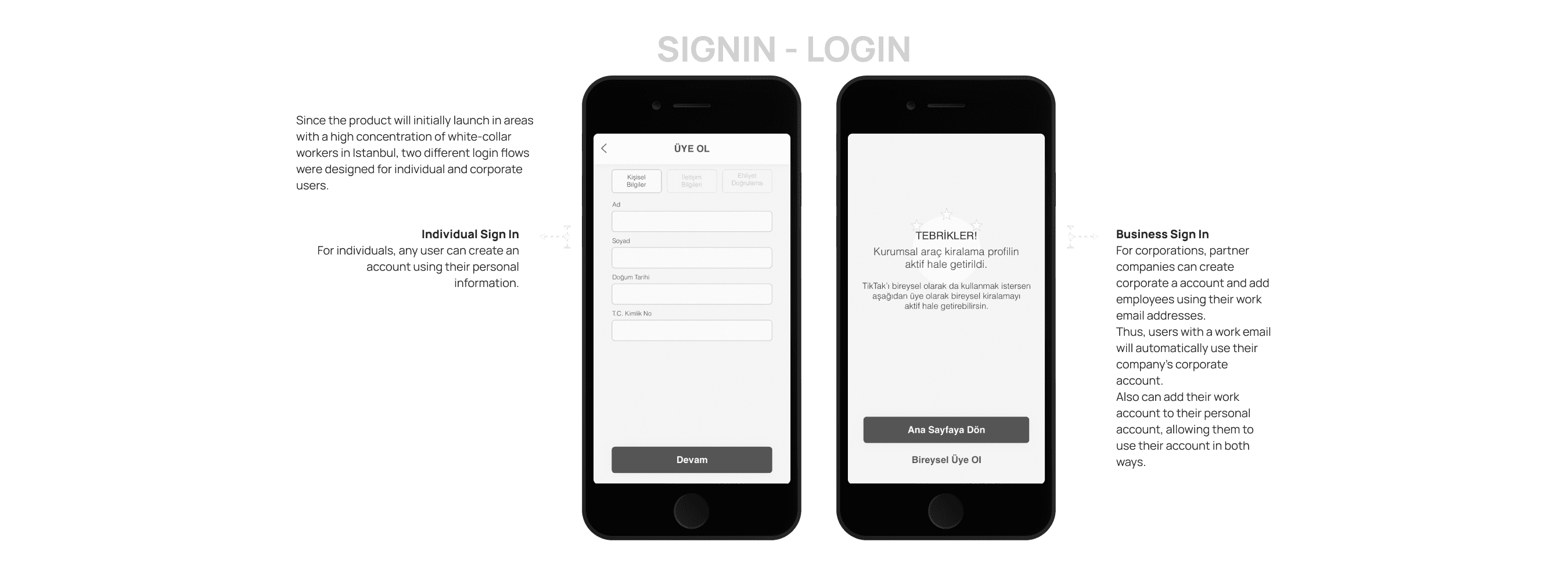 Differentiation was worked on for individual and corporate driving screens.