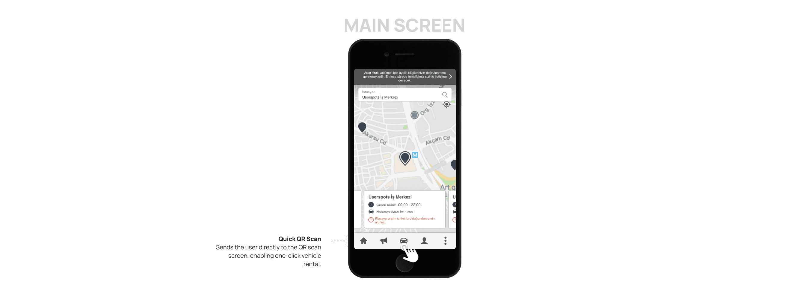 One-click Rental: A QR scan feature enabling quick and effortless vehicle rentals.