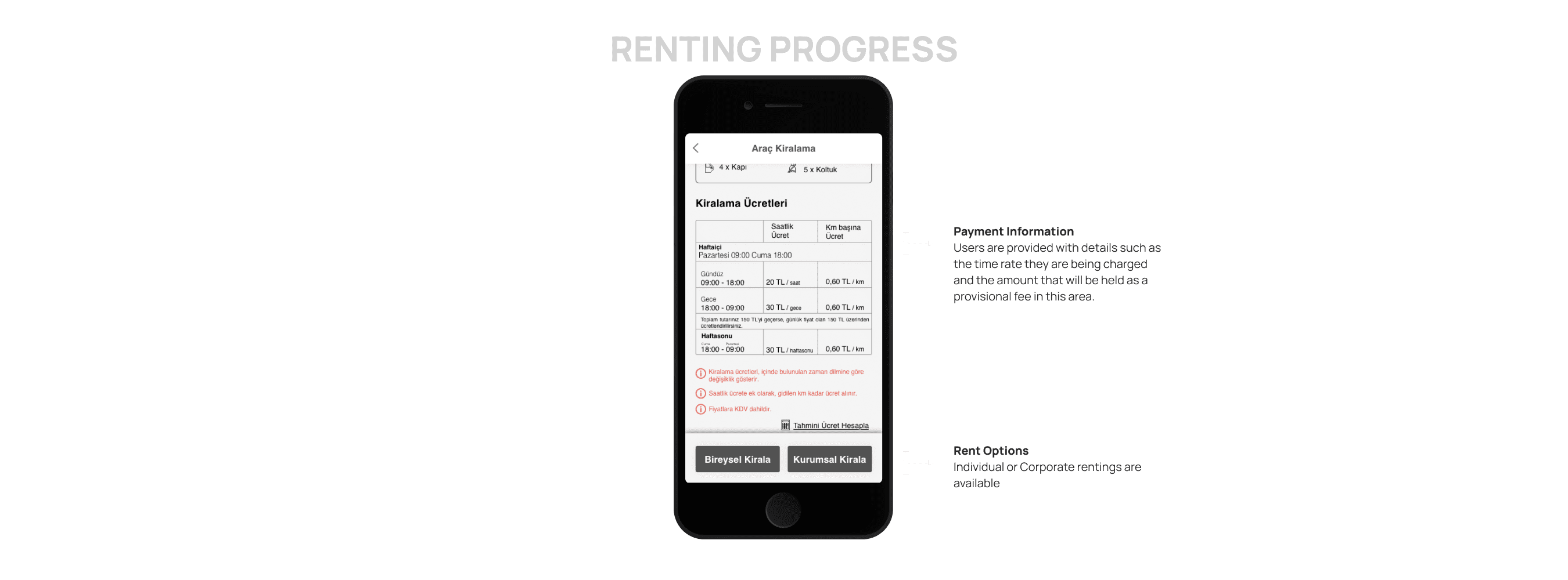 Additionally, dashboard screens were designed for corporate use. This allows companies to create their own rental pages in the system, add employees to the system using their work emails, and manage usage details, payments, and balances through these dashboards.